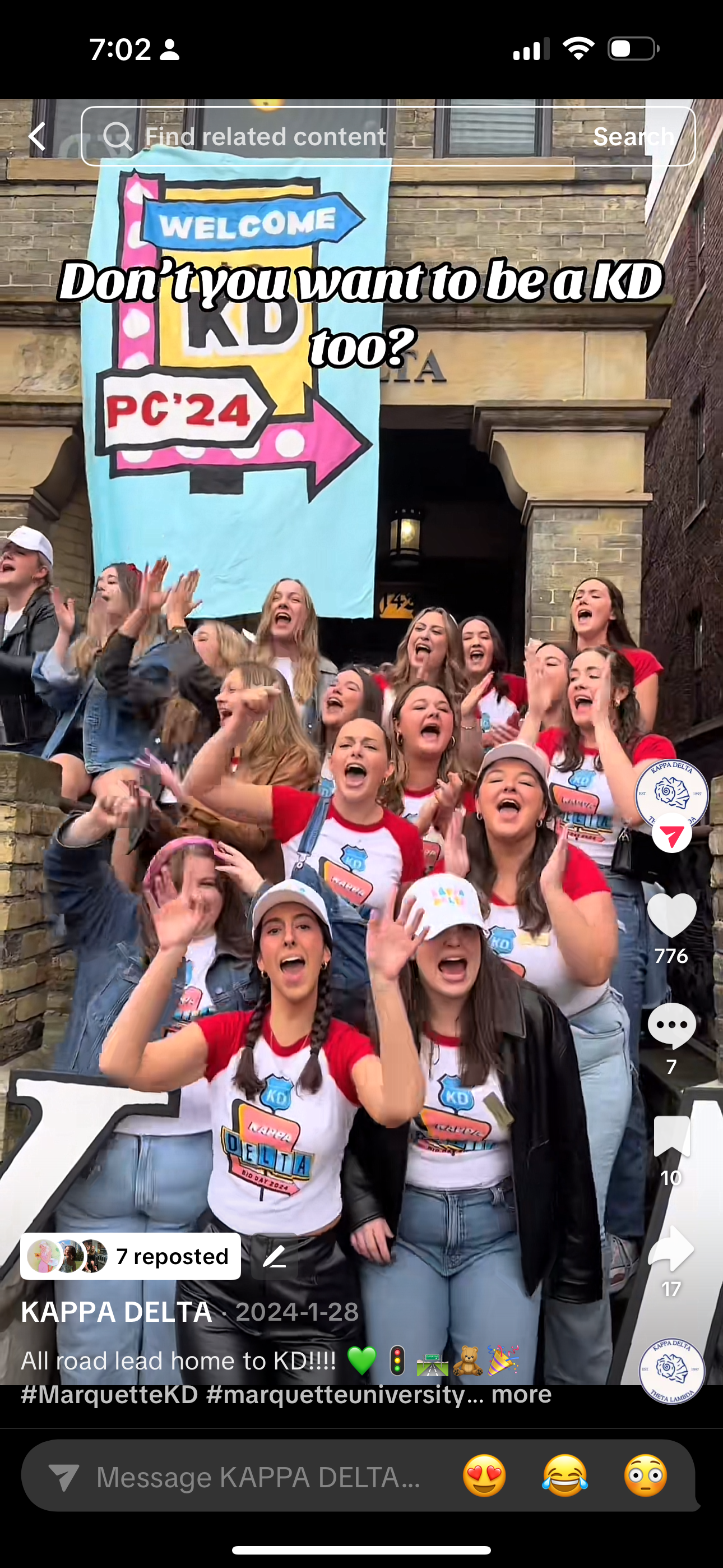 On Bid Day, I put together a lively TikTok using candid clips of Kappa Delta women chanting our KD chant. By focusing on authentic moments and real reactions, the video captured the energy and excitement of welcoming new members. The final edit felt fun, genuine, and highly shareable, helping strengthen our chapter’s online presence while celebrating the spirit of KD.