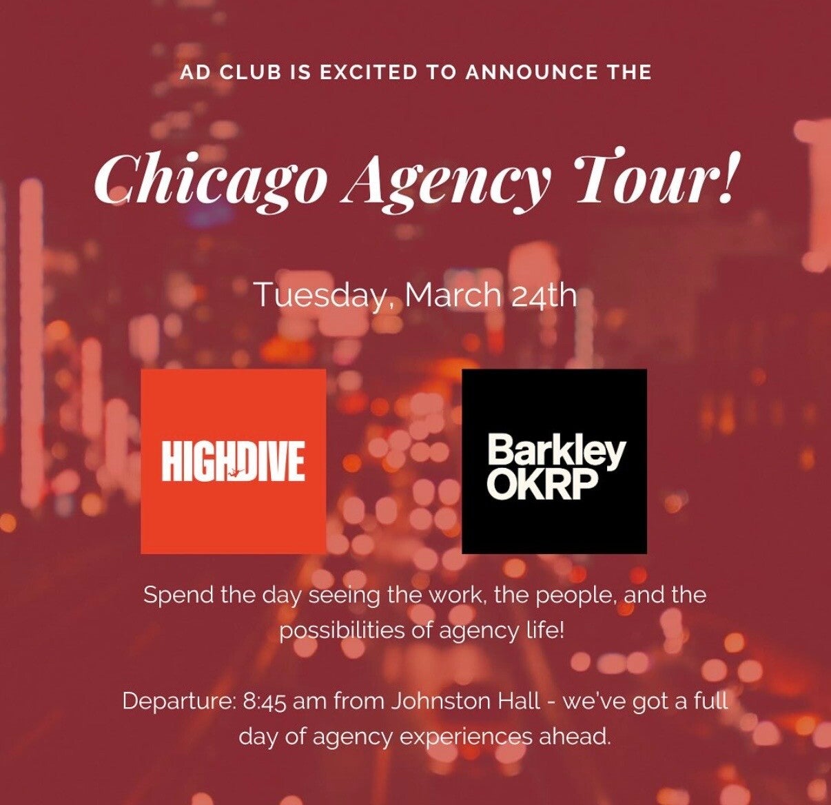 We had the incredible opportunity to visit Hoffman York and gain a firsthand look at what it’s like to work at a creative agency. During the visit, we were able to connect with industry professionals, observe the collaborative environment, and learn about the day-to-day responsibilities and creative processes that drive agency work. The experience provided invaluable insight into the advertising industry, inspired new ideas, and offered a unique chance to ask questions, build professional connections, and better understand how to translate classroom learning into real-world practice.
